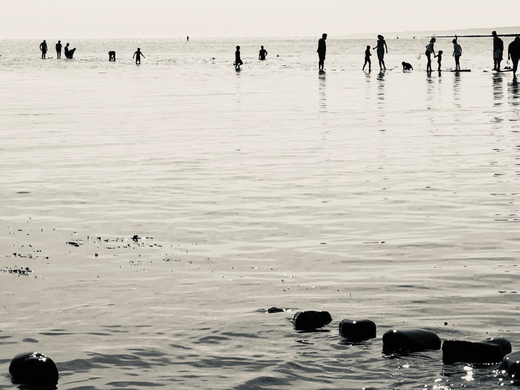 Wind backing West to the slate grey of the lesser black backed Gulls, their temporary wetland trails. Face painting kittiwakes and bubble blowing cheer. Veer East to the docks where laundry clings to black balcony rails.